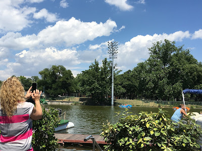 We decided to go ahead and get lunch--grilled cheese and WHATEVER. I got one that was strongly reminiscent of a pizza, mozzarella and sundried tomato, but the main thing was that it was fresh! Delicious. Of course I had to get an iced coffee, which in Budapest means "covered with dangerous amounts of whipped cream and/or ice cream"...yikes! What an enjoyable afternoon, beautiful in the shade, just relaxing with the oleander lining the river.